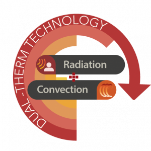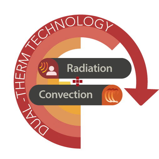 - Dual-therm heating system: infrared radiation + natural convection