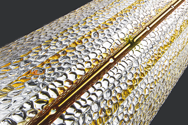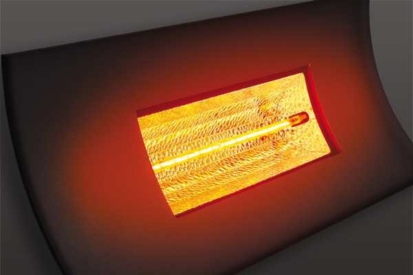 The special aluminum reflector with hammered surface propagates over 90% of the thermal energy emitted by the heating element